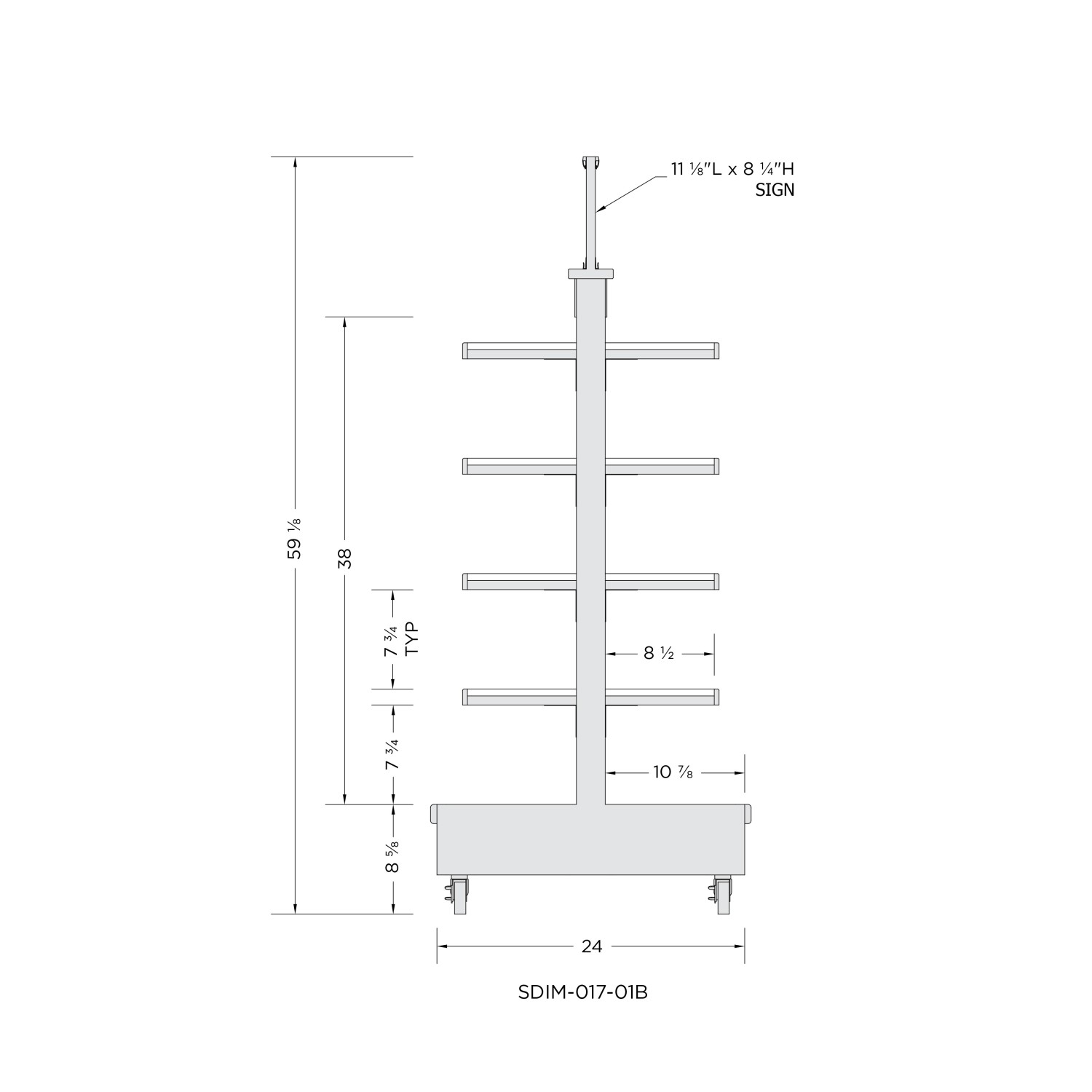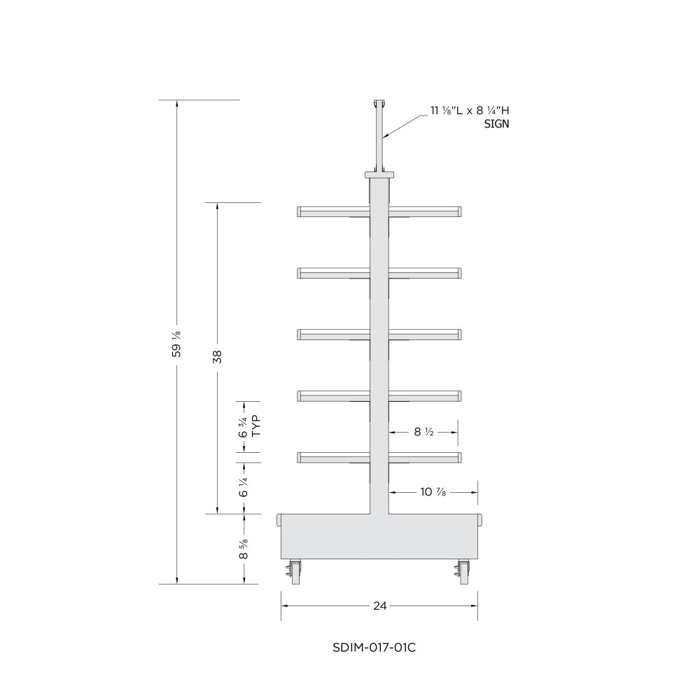 | SDIM-017-01B | 24”L x 24"D x 59"H | Walkaround Shelving Display - 4 Fixed Shelves |