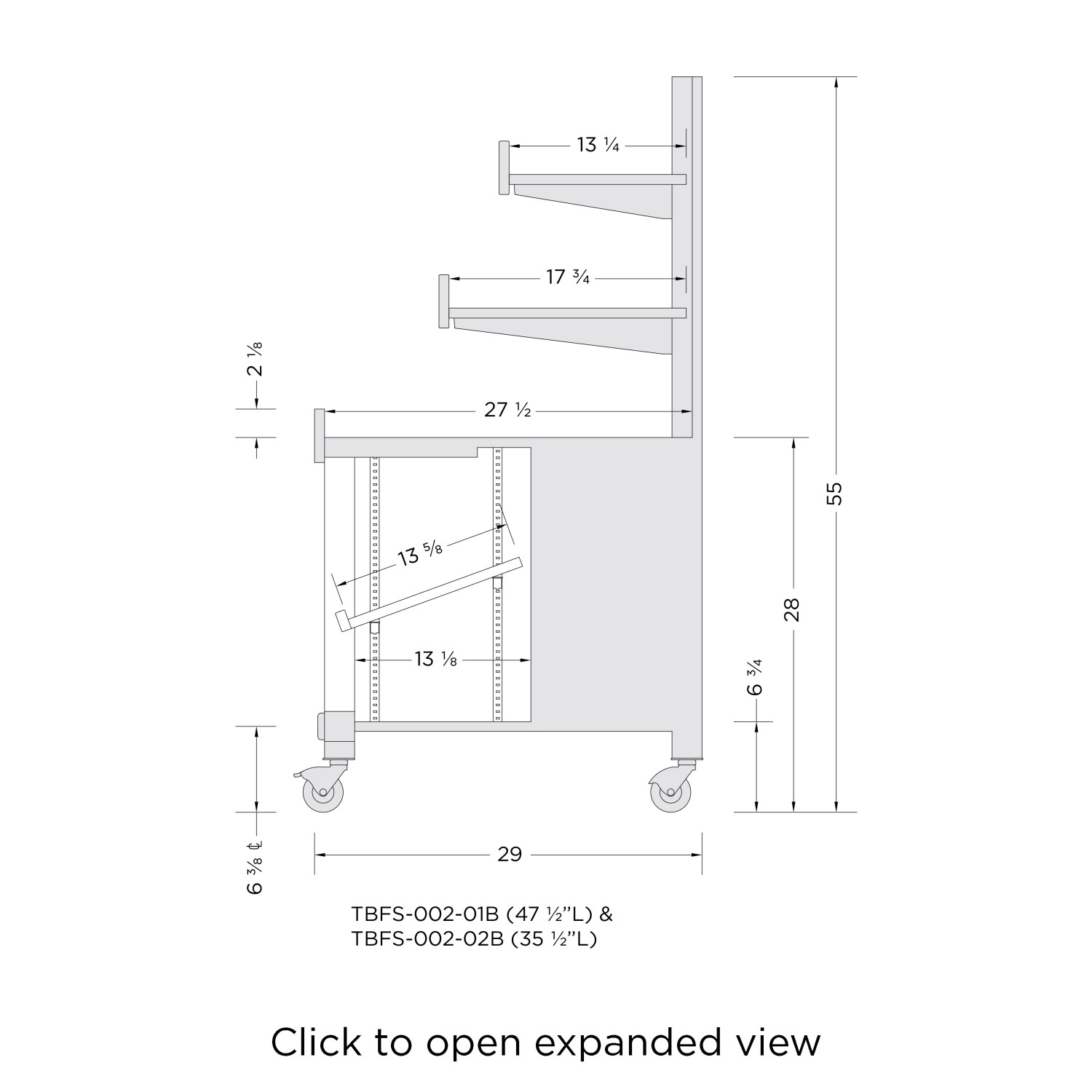 | TBFS-002-01B | 47 ½”L x 29”D x 55”H | Multi-Shelf Table - 48” |
