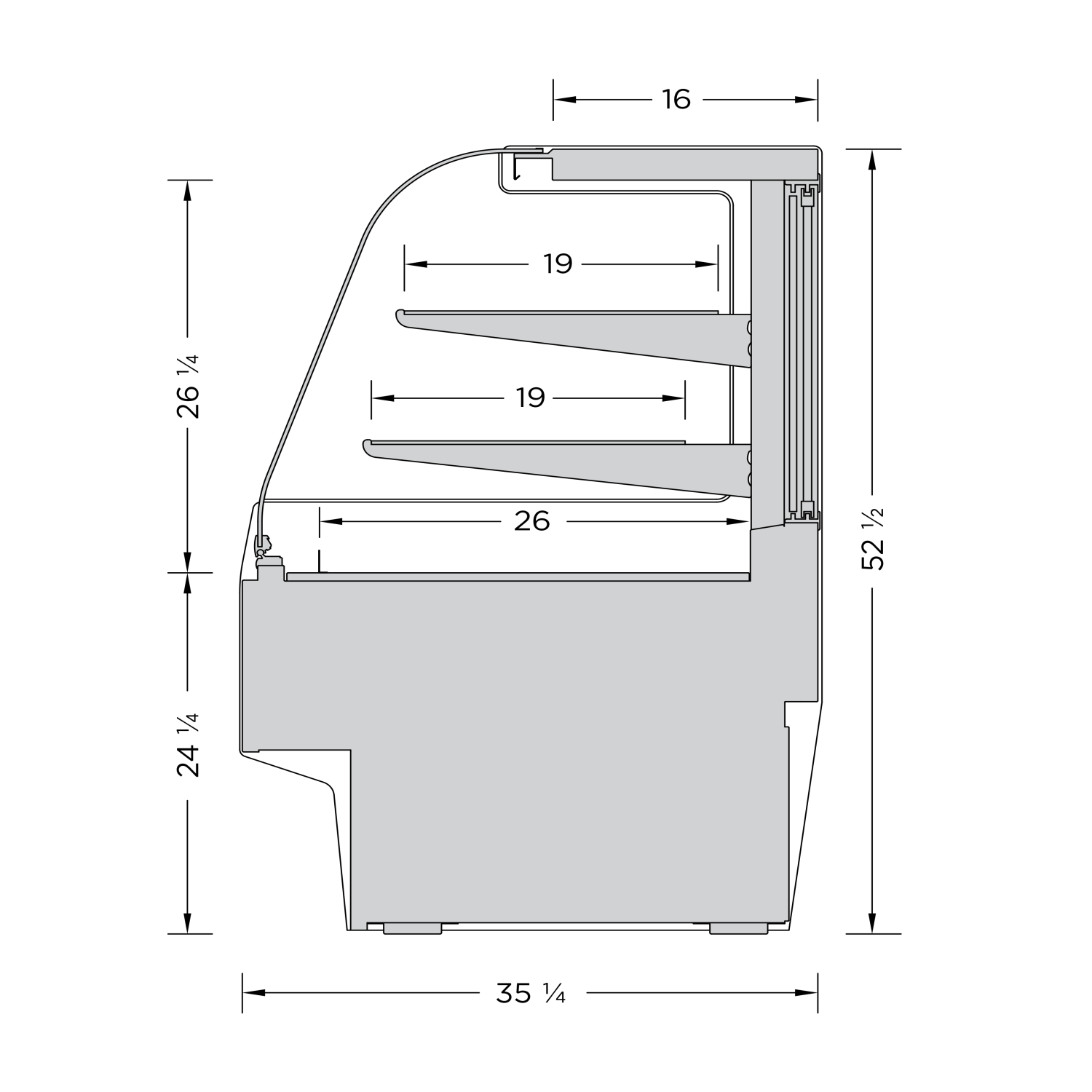 | DC-RS3M-48 | 49 ⅞” x 35 ¼"D x 52 ¼"H | Curved Glass Service Display |